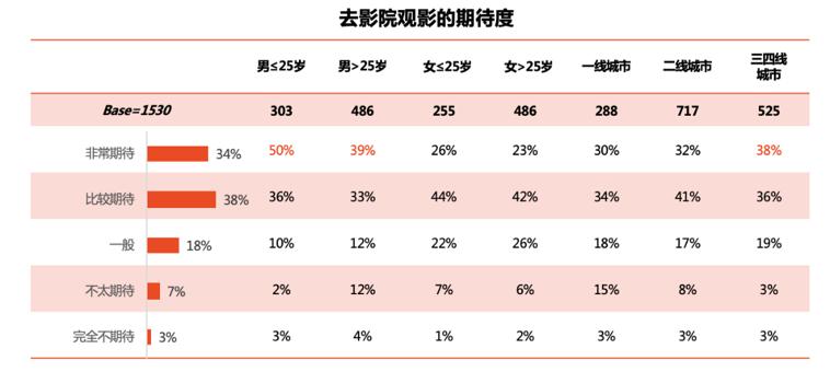 在时间预期这方面来看,有半数持谨慎态度的人觉得,最快到5月中旬的时候,才有可能适合去观影,然而近四成人极其悲观地觉得,得要等到9月之后才行。这种时间预期被拉长了,这是因为当时国外疫情恰巧处于爆发期间,观众们普遍都认定不宜过早表现出乐观的态度,是这样的情况。