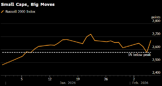上周五消费者信心指数意外大幅走强,暂时遏制了抛售潮,但在此之前,罗素 2000 指数已较近期高点下跌超 5%。