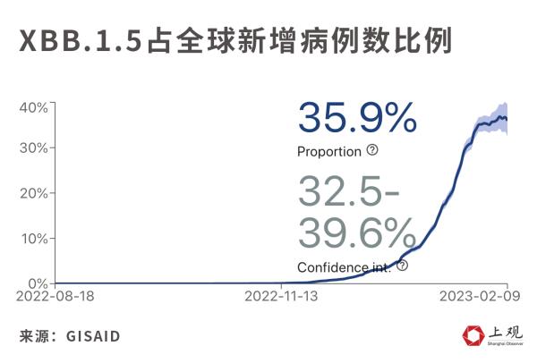 2月15日,国内头一回检测出XBB.1.5变异株,依据全球数据而言,XBB.1.5当下占全球新增病例的35.9%,已在最少65个国家以及地区出现。
