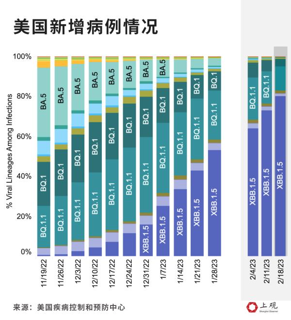 依据美国方面的数据而言,由XBB.1.5所引发的感染范围在规模程度上相对显得比较小。截止到2月19日这个时间节点,美国此次的疫情已然呈现出一种下降的趋向样子,单日当中新增的感染数量相比于1月初的时候下降了大概50%。
