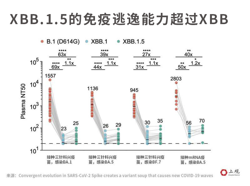 有科学研究做出表明,XBB.1.5具备十分强的免疫逃逸能力,中国科学院感染与免疫重点实验室在1月3日发表的文章呈现出,其逃逸方面的能力算是是XBB毒株在这相同方面能力的1.1至1.2倍。