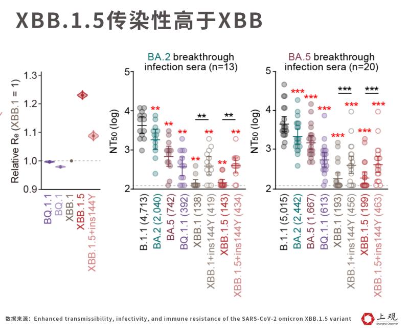 东京大学医学研究所于1月31日发表的论文表明,在传播速度方面,XBB.1.5的有效繁殖数相较于XBB.1高出了百分之二十,这确切地意味着它的传播能力实实在在地有所增强。