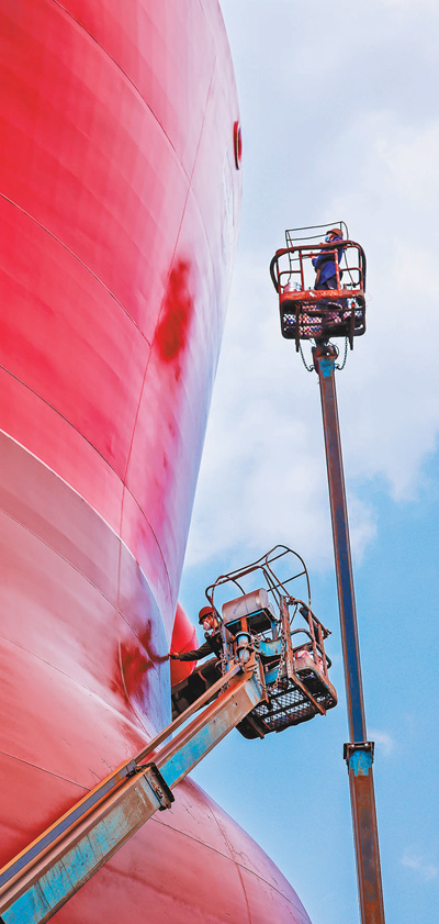 在保证安全生产得以实现的前提条件之下,广东中远海运重工有条不紊地开展船舶修理工作。港口航运这条对外贸易的生命线,它的稳定运作对于维持外贸局面、推动经济增长有着极为重要的意义。这样的情况昭示了在复杂形势氛围之下为维护关键基础设施能够持续运转的一番努力。